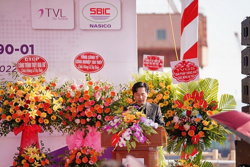 Ông Lê Duy Hưng, Chủ tịch HĐQT Công ty Cổ phần Tập đoàn Duafat đã bày tỏ lòng cảm ơn sâu sắc tới đơn vị thiết kế, đơn vị thi công, cơ quan đăng kiểm đã hoàn thiện và tạo điều kiện để Lễ hạ thủy sà lan tự nâng 90M/JUB90-01 đúng tiến độ, diễn ra suôn sẻ, thuận lợi. Ông cũng gửi lời cảm ơn tới đơn vị tài trợ tín dụng, Ngân hàng SHB Chi nhánh Thăng Long đã luôn ủng hộ và đồng hành cùng doanh nghiệp để tạo nên thành công trong việc sản xuất sà lan tự nâng 90M/JUB90-01.