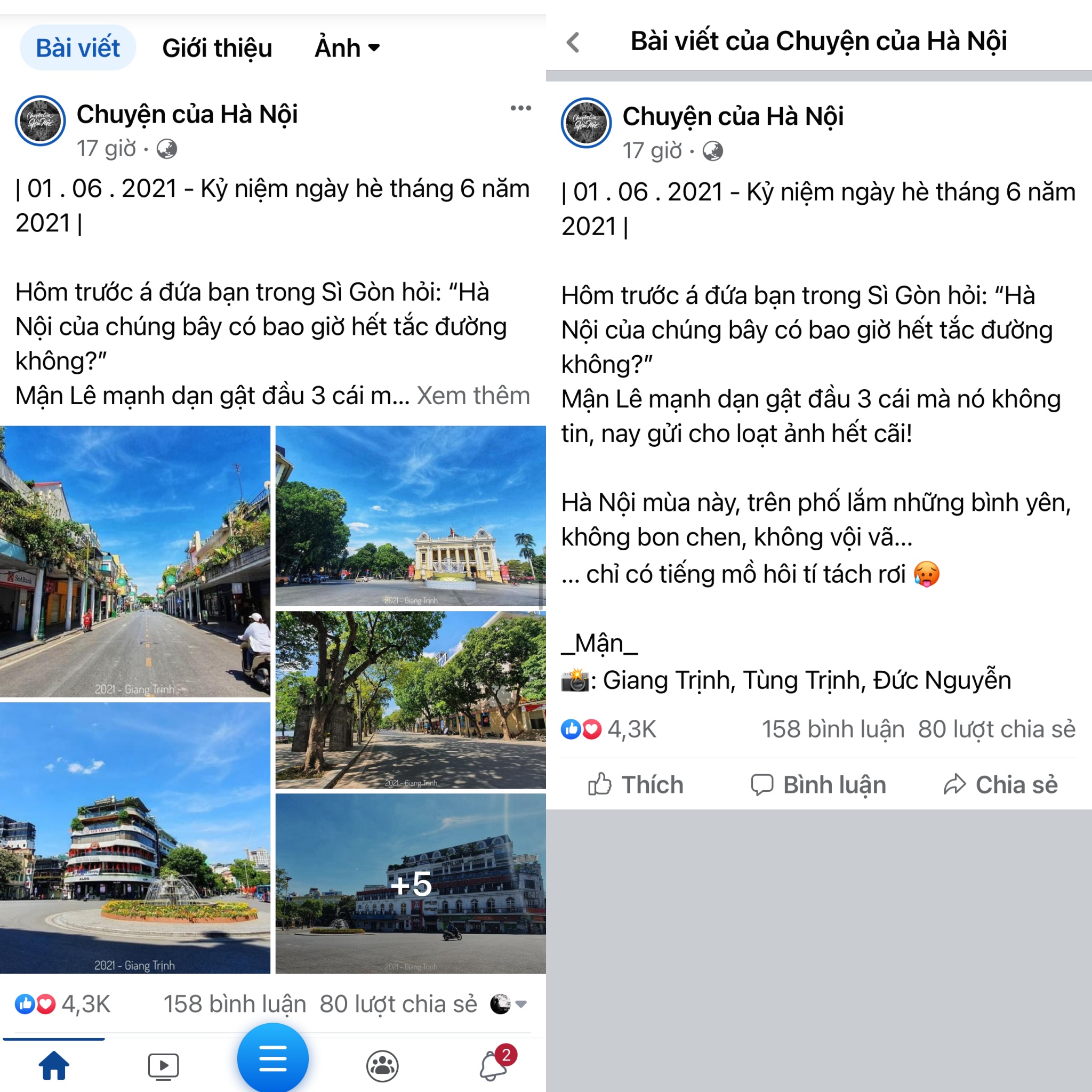 Theo đó, khi người dùng click vào ảnh chỉ xem được nội dung bài viết, toàn bộ phần ảnh đã biến mất. Đáng chú ý, sự cố này chỉ xuất hiện trên điện thoại với phần hiển thị nhiều ảnh. Người dùng đăng một tấm ảnh sẽ không gặp sự cố trên.
