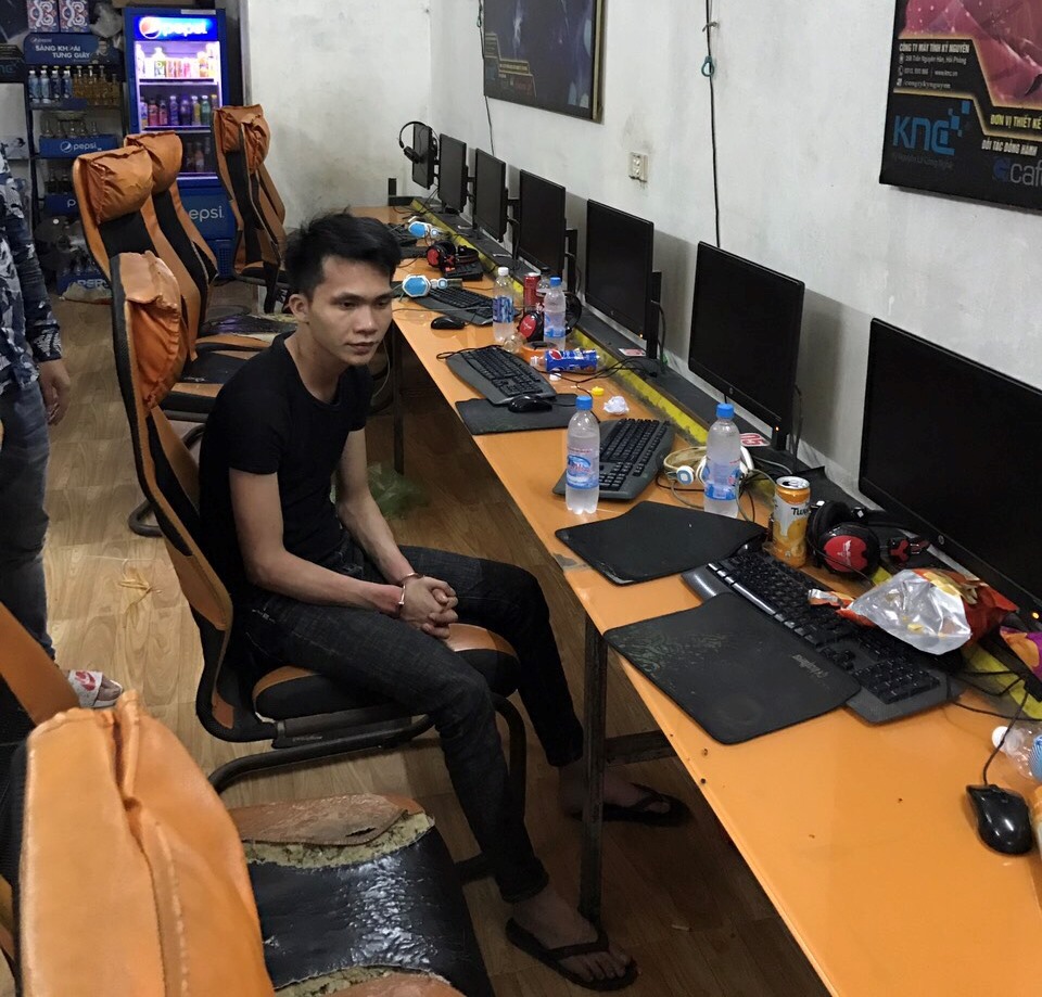 Sau thời gian trinh sát, mật phục, nhận thấy thời cơ đã triệt xóa đã đến, vào khoảng 21h20’, ngày 16-4, CAH Kiến Thụy cùng chính quyền địa phương xã Minh Tân bất ngờ tiến hành kiểm tra hoạt động cơ sở kinh doanh dịch vụ internet của ông Ngô Quang Nhạt, sinh 1955, ở thôn Thấp Linh, xã Minh Tân.