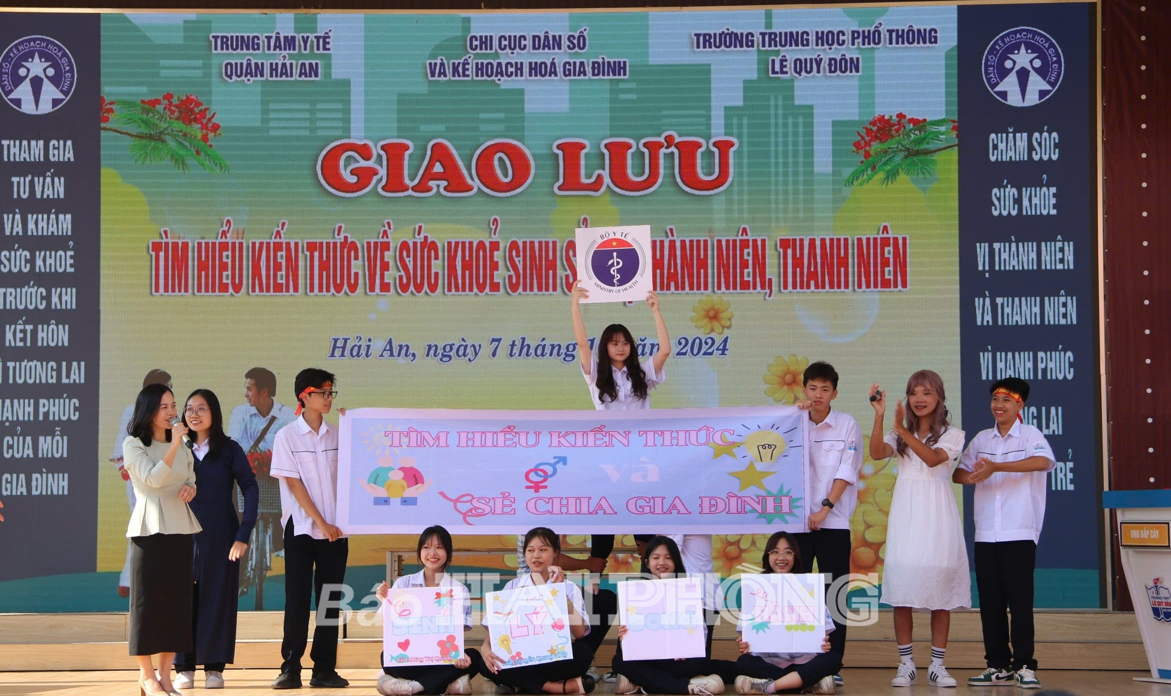 Sáng 7/10, Chi cục Dân số-KHHGĐ thành phố phối hợp Trung tâm y tế quận Hải An và Trường THPT Lê Quý Đôn tổ chức giao lưu tìm hiểu kiến thức về sức khỏe sinh sản vị thành niên, thanh niên và tư vấn khám sức khỏe trước khi kết hôn năm 2024.