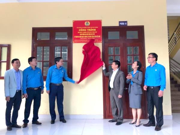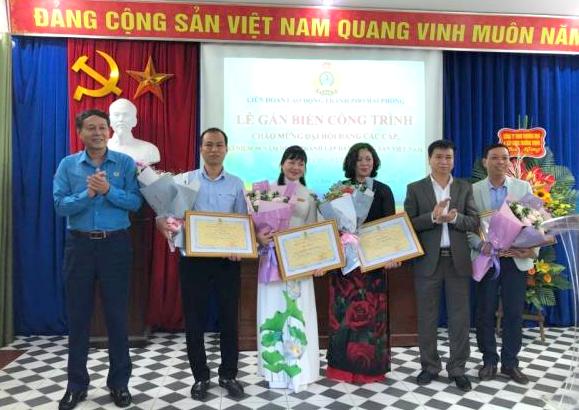 Nhân dịp này, LĐLĐ thành phố đã có quyết định công nhận và gắn biển công trình xây dựng “Dãy nhà lớp học 4 tầng khu C, trường Tiểu học Nguyễn Công Trứ, quận Lê Chân” và “Dãy nhà lớp học khu nhà C, trường Tiểu học Lê Văn Tám, quận Lê Chân” là công trình chào mừng Đại hội Đảng các cấp, chào mừng 90 năm Ngày thành lập Đảng Cộng sản Việt Nam (03/02/1930 – 03/02/2020); đồng thời tặng Bằng khen của Ban chấp hành Liên đoàn Lao động thành phố cho 2 tập thể và 3 cá nhân đã có thành tích xuất sắc trong phong trào thi đua lao động giỏi và xây dựng tổ chức Công đoàn vững mạnh.