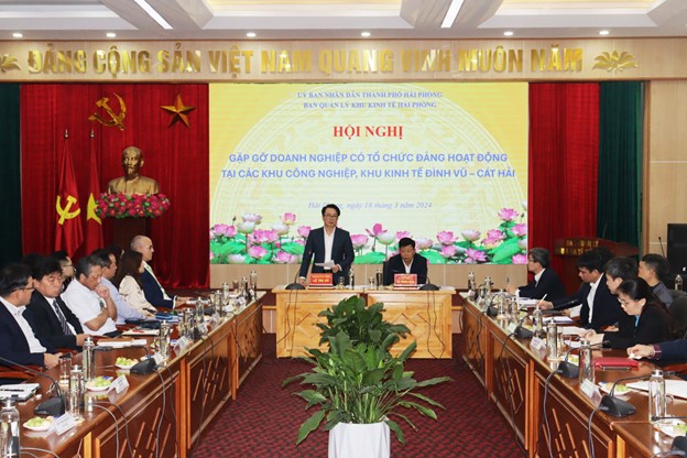 Phát biểu tại Hội nghị, đồng chí Lê Trí Vũ, Trưởng Ban Dân vận Thành ủy, Phó Trưởng Ban Thường trực Ban Chỉ đạo xây dựng giai cấp công nhân Hải Phòng ghi nhận các lãnh đạo các doanh nghiệp có tổ chức Đảng tại khu vực ngoài Nhà nước tại Khu kinh tế Đình Vũ – Cát Hải và các Khu công nghiệp trên địa bàn thành phố đã luôn quan tâm, tạo điều kiện cho các tổ chức Đảng hoạt động; đồng thời ghi nhận sự nỗ lực, cố gắng của các đồng chí Bí thư Chi bộ trong thực hiện các nhiệm vụ được giao.