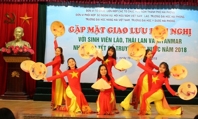 Chiều 16-4, tại Trường đại học Hải Phòng, gần 200 sinh viên Lào, Thái Lan, Mi-an-ma đang học tập tại các trường đại học trên địa bàn thành phố Hải Phòng phấn khởi tham gia gặp mặt, giao lưu hữu nghị sinh viên quốc tế nhân dịp Tết cổ truyền của các nước ASEAN năm 2018.