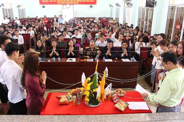 Sinh viên các nước thực hiện nghi thức buộc chỉ cổ tay cổ truyền
