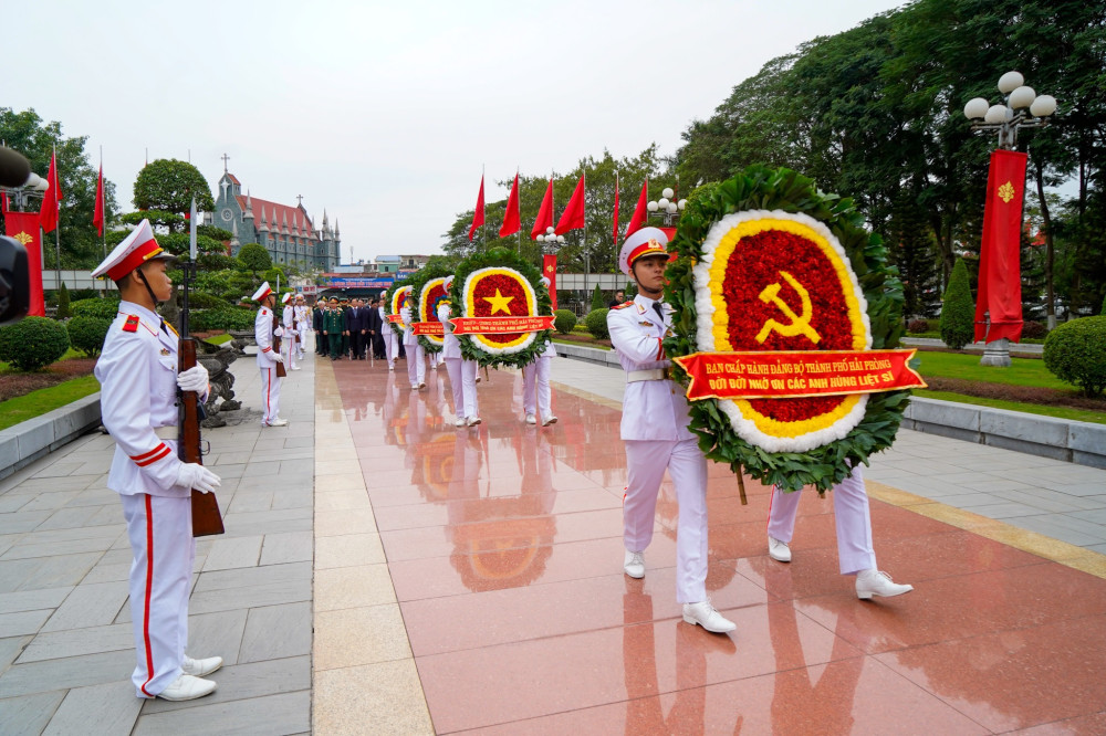Trước đó, Đoàn đại biểu Thành ủy, HĐND, UBND, Ủy ban MTTQ Việt Nam thành phố do đồng chí Lê Tiến Châu, Ủy viên Trung ương Đảng, Bí thư Thành ủy, Trưởng đoàn ĐBQH Hải Phòng dẫn đầu đã tới đặt vòng hoa, dâng hương, tưởng niệm các Anh hùng liệt sĩ tại Đài tưởng niệm các Anh hùng liệt sĩ thành phố và Tượng đài đồng chí Nguyễn Đức Cảnh./.