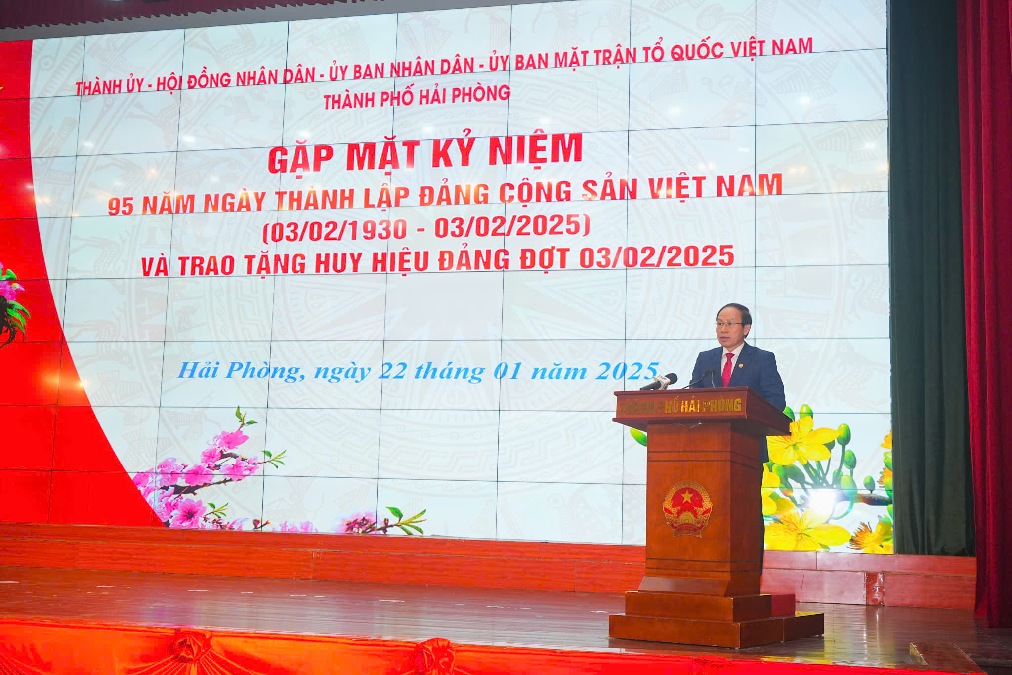 Sáng 22/1, tại Trung tâm Hội nghị thành phố, Ban Thường vụ Thành uỷ Hải Phòng long trọng tổ chức chương trình gặp mặt Kỷ niệm 95 năm Ngày thành lập Đảng Cộng sản Việt Nam (3/2/1930 – 3/2/2025) và Trao tặng Huy hiệu Đảng đợt 3/2/2025. Đồng chí Lê Tiến Châu, Ủy viên Trung ương Đảng, Bí thư Thành ủy, Trưởng Đoàn Đại biểu Quốc hội Hải Phòng chủ trì cuộc gặp mặt.