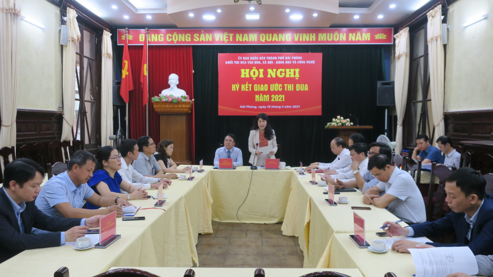 Phát biểu tại Hội nghị, Phó Chủ tịch UBND thành phố Lê Khắc Nam ghi nhận và biểu dương những đóng góp tích cực của các ngành Văn hóa-Xã hội-Khoa học và công nghệ thành phố vào sự phát triển của thành phố. Trong đó, nổi bật, Sở Văn hóa và Thể thao, đơn vị năm 2021 là trưởng khối, đã linh hoạt đề xuất với thành phố triển khai thực hiện Đề án Sân khấu truyền hình phục vụ nhân dân trong thời gian thực hiện giãn cách xã hội, phòng chống dịch COVID-19, các vở diễn có chất lượng ngày càng nâng cao; phối hợp với các đơn vị chức năng làm tốt việc khai quật và bảo tồn bãi cọc Cao Quỳ; tổ chức Lễ đón nhận bằng xếp hạng di sản quốc gia tại Khu di tích Bạch Đằng Giang.