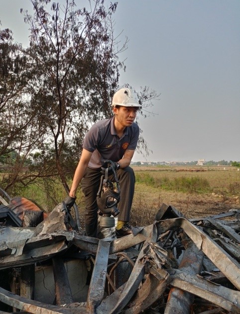 Trong khi Trung tá Bình đang trao đổi với phóng viên thì Đại úy Phạm Hoàng Hiệp, một gương mặt ưu tú trong giám định cháy nổ của Phòng KTHS, vừa đi hiện trường vụ cháy tại một nhà dân ở số 67/38 An Đà, quận Ngô Quyền vào khoảng 05h59’ ngày 12/3/2024, về báo cáo Đội trưởng nguyên nhân cháy là do chập điện ở máy hút ẩm, may lực lượng chữa cháy cứu thoát được 3 người.