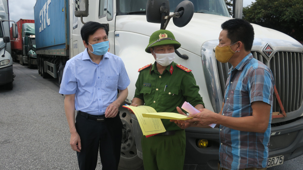 Tại thời điểm kiểm tra, lượng người và phương tiện qua lại chốt kiểm soát rất đông. Các phương tiện và người đi vào thành phố được lực lượng chức năng đo thân nhiệt, thực hiện khai báo y tế và kiểm tra kết quả xét nghiệm COVID-19. Sau khi thành phố ban hành văn bản chỉ đạo số 4761/UBND-VX ngày 17/7/2021 về việc kiểm soát phương tiện vận tải hàng hóa ra vào thành phố trong phòng, chống dịch, đến thời điểm này chưa có phương tiện vận tải hàng hóa thuộc nhóm nguy cơ cao đi từ tỉnh Nghệ An trở vào các tỉnh phía Nam (dán logo màu đỏ) đi vào thành phố.