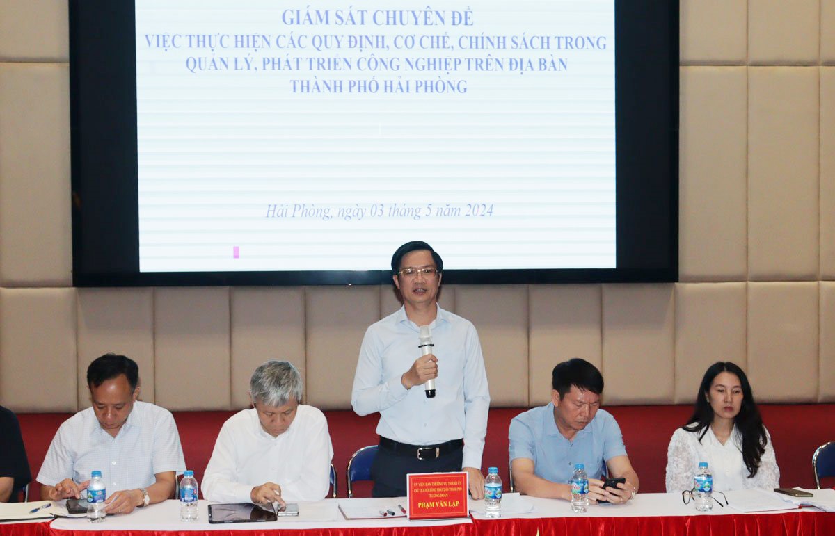 Qua khảo sát thực tế và nghe báo cáo, ý kiến của một số doanh nghiệp trong KCN VSIP Hải Phòng, phát biểu tại cuộc giám sát, Chủ tịch HĐND thành phố Phạm Văn Lập đánh giá, VSIP Hải Phòng đã trở thành nhân tố quan trọng trong việc thu hút đầu tư, thúc đẩy tăng trưởng kinh tế, gia tăng giá trị xuất khẩu, đóng góp đáng kể vào nguồn thu ngân sách thành phố và tạo việc làm cho người lao động trên địa bàn cũng như các tỉnh lân cận, góp phần ổn định và nâng cao thu nhập cho người dân. Chủ tịch HĐND thành phố đề nghị Tổ giúp việc của Đoàn giám sát ghi nhận, tiếp thu các đề xuất, kiến nghị của doanh nghiệp để tổng hợp, gửi các Sở, ban, ngành, địa phương, đơn vị liên quan báo cáo bổ sung, làm rõ các cơ chế, chính sách, giải pháp hỗ trợ, tháo gỡ khó khăn, giúp các doanh nghiệp hoạt động ổn định, tiếp tục phát triển…