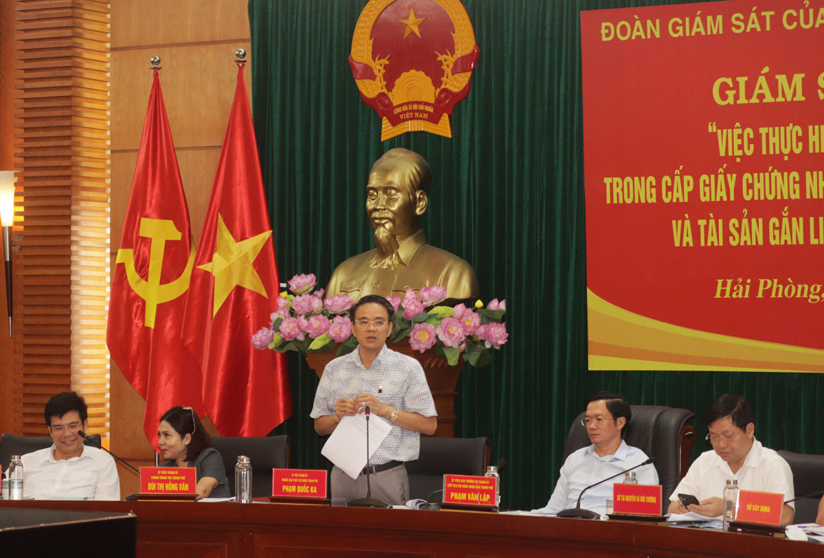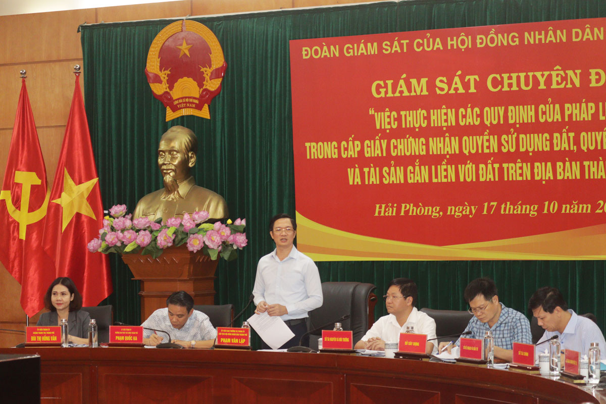 Qua nghe báo cáo và ý kiến của các thành viên Đoàn giám sát, phát biểu tại cuộc làm việc, Chủ tịch HĐND thành phố Phạm Văn Lập đánh giá, Sở Tài nguyên và Môi trường, Sở Xây dựng và Văn phòng Đăng ký đất đai (thuộc Sở Tài nguyên và Môi trường) đã có nhiều nỗ lực, cố gắng trong công tác cấp Giấy chứng nhận quyền sử dụng đất trong thời gian qua; chú trọng xây dựng, cập nhật, làm sạch và số hóa hồ sơ địa chính, cơ sở dữ liệu đất đai được thực hiện gắn liền với việc thực hiện giải quyết thủ tục hành chính; đẩy nhanh thời gian thực hiện các thủ tục hành chính cho người dân và doanh nghiệp, qua đó góp phần làm tăng số thu cho ngân sách thành phố.