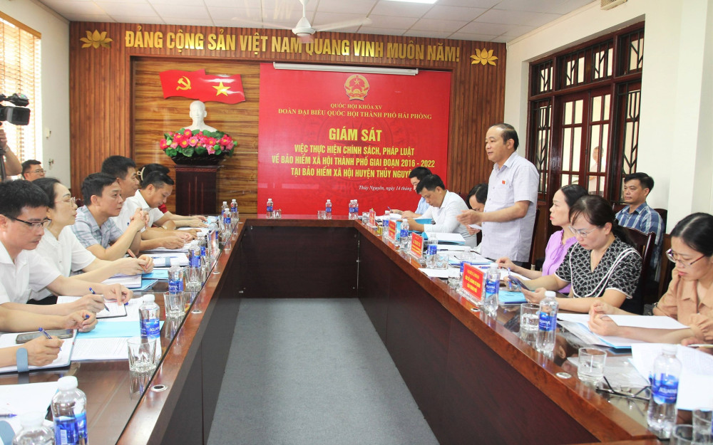 Sáng 14/7, Đoàn đại biểu Quốc hội thành phố Hải Phòng do Phó trưởng Đoàn đại biểu Quốc hội chuyên trách thành phố Lã Thanh Tân làm Trưởng đoàn, giám sát chuyên đề “Tình hình, kết quả thực hiện chính sách, pháp luật về BHXH giai đoạn 2016-2022” tại BHXH huyện Thuỷ Nguyên.
