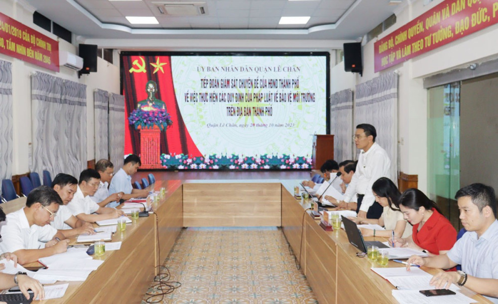 Chiều 20/10, Đoàn Giám sát chuyên đề của HĐND thành phố do đồng chí Phạm Quốc Ka, Trưởng Ban Pháp chế HĐND thành phố làm Trưởng Đoàn đi khảo sát tại Cụm công nghiệp Vĩnh Niệm và làm việc với UBND quận Lê Chân về việc thực hiện các quy định của pháp luật về bảo vệ môi trường. Cùng dự có đại diện lãnh đạo các Sở, ban, ngành, đơn vị liên quan.