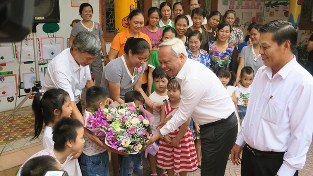Nhân dịp này, Phó Chủ tịch Quốc Hội Uông Chu Lưu và Chủ tịch UBND thành phố Nguyễn Văn Tùng tặng những phần quà ý nghĩa cho cán bộ, nhân viên, các mẹ, các dì và trẻ em đang sinh sống tại làng.