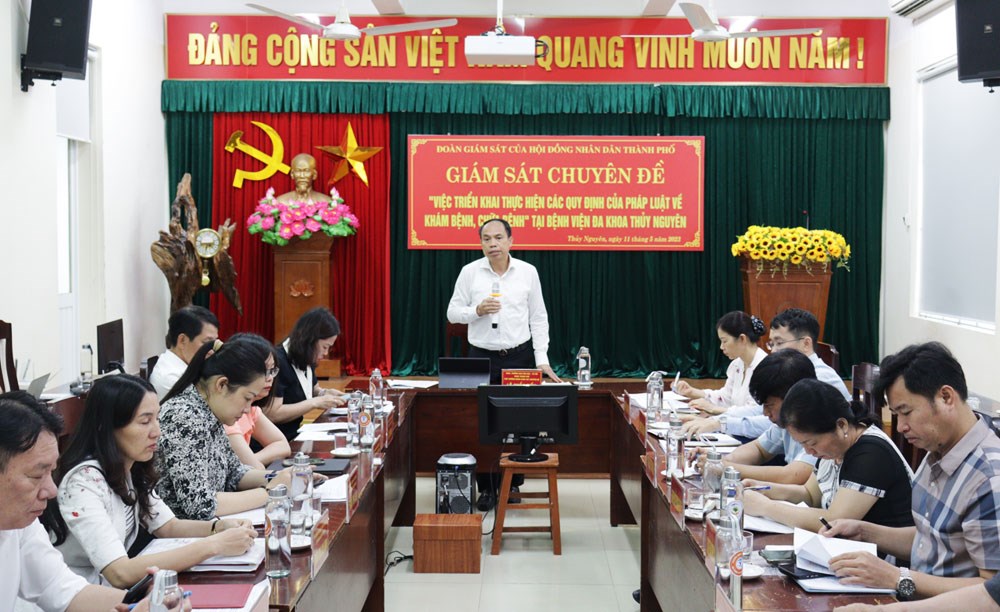 Chiều 11/5, Đoàn giám sát chuyên đề của HĐND thành phố do đồng chí Lê Quốc Tiến, Trưởng Ban Văn hóa-Xã hội HĐND thành phố làm Trưởng đoàn, giám sát việc triển khai thực hiện các quy định của pháp luật về khám bệnh, chữa bệnh tại Bệnh viện đa khoa huyện Thủy Nguyên. Dự cuộc làm việc có đại diện lãnh đạo các Sở, ngành, đơn vị liên quan.