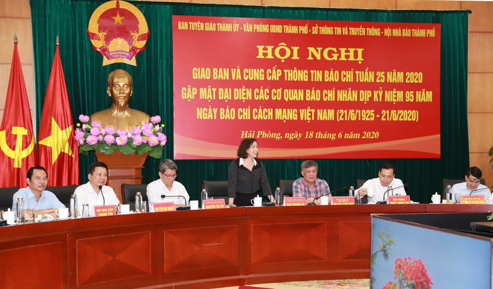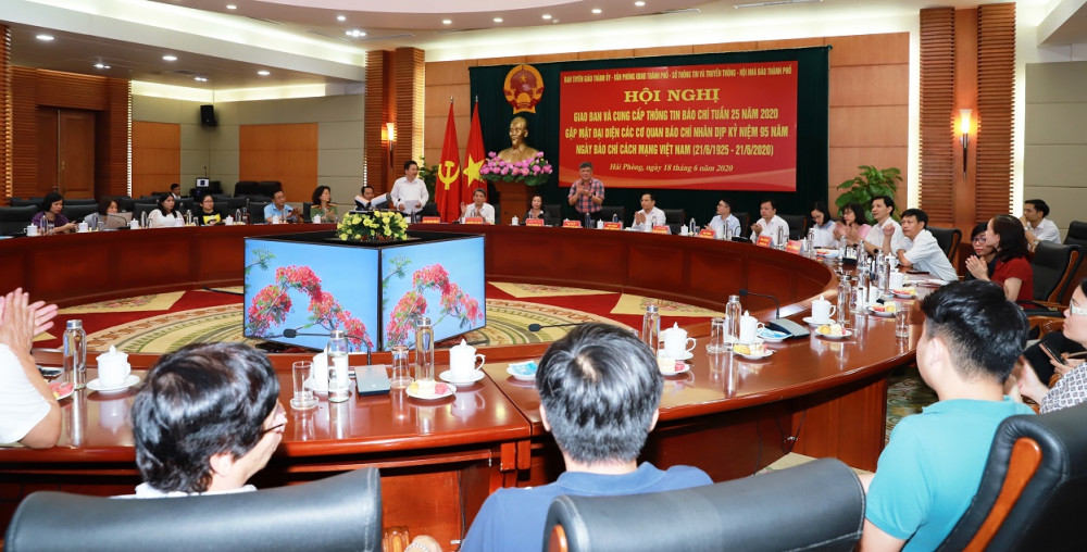 Chiều 18-6, Ban Tuyên giáo Thành ủy phối hợp với Văn phòng UBND thành phố, Sở Thông tin truyền thông và Hội Nhà báo thành phố Hải Phòng tổ chức hội nghị giao ban và cung cấp thông tin báo chí tuần 25 tháng 6 năm 2020; gặp mặt đại diện các cơ quan báo chí nhân dịp kỷ niệm 95 năm ngày Báo chí cách mạng Việt Nam (21/6/1925 – 21/6/2020).