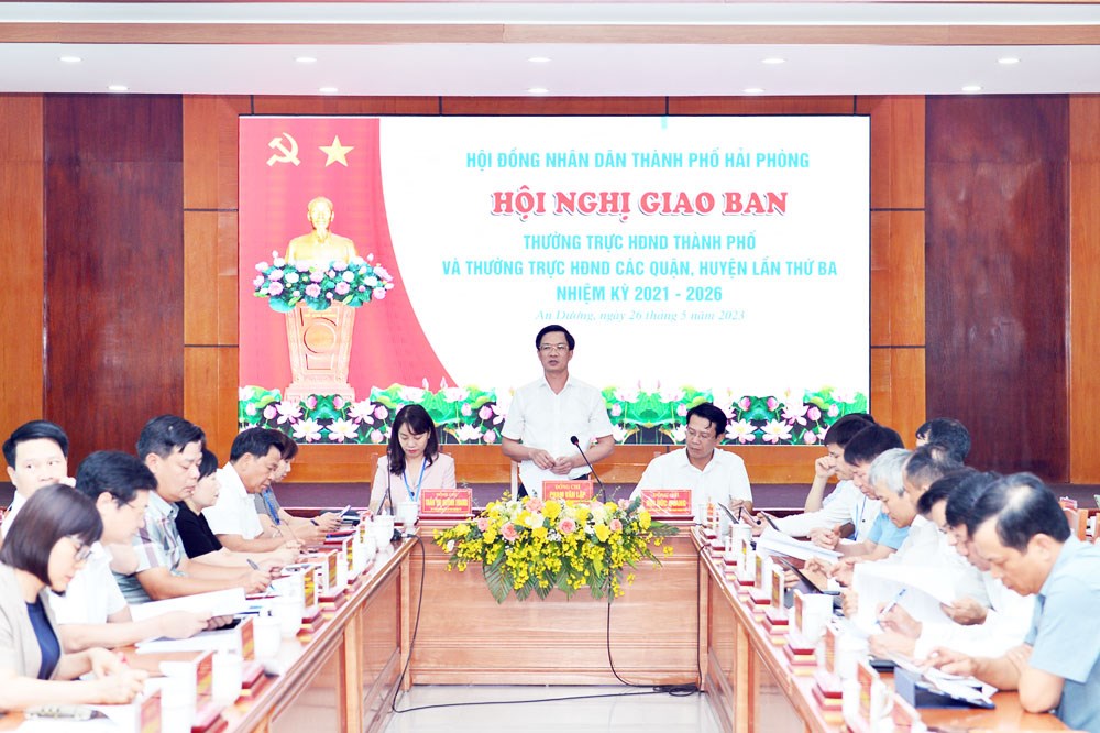 Chiều 26/5, tại huyện An Dương, HĐND thành phố tổ chức Hội nghị giao ban giữa Thường trực HĐND thành phố với Thường trực HĐND các quận, huyện lần thứ 3, nhiệm kỳ 2021-2026.