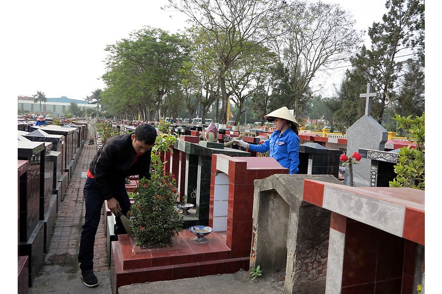 Tại nhiều nghĩa trang trên địa bàn thành phố, chính quyền, đoàn thể các địa phương và nhân dân tổ chức các đợt ra quân dọn vệ sinh môi trường, chỉnh trang khuôn viên, sửa sang mộ phần, bảo đảm sạch đẹp. Từ giữa tháng 2 âm lịch, đông đảo người dân đến các nghĩa trang ở khu vực nội thành ở chùa Đồng Thiện (quận Lê Chân); Ninh Hải (quận Dương Kinh) và các nghĩa trang ở các xã, thị trấn chăm sóc phần mộ, dâng hương tưởng nhớ tổ tiên, người đã khuất, thể hiện đạo lý “uống nước nhớ nguồn”.