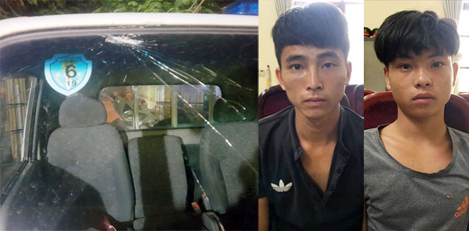 Ba thanh niên đi xe mô tô tới vị trí cách Tổ Công tác làm nhiệm vụ khoảng 200m thì dừng lại, gửi xe vào nhà người dân ven đường để dùng gạch ném thẳng vào xe ô tô tuần tra kiểm soát giao thông làm vỡ kính chắn gió và bỏ chạy…