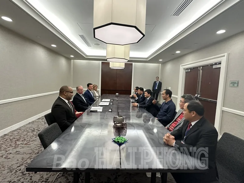 Phát biểu tại hội nghị, đồng chí Bí thư Thành ủy Lê Tiến Châu giới thiệu tiềm năng, lợi thế, định hướng chiến lược và cam kết mạnh mẽ của thành phố Hải Phòng đối với các nhà đầu tư, nhất là các đối tác Hoa Kỳ đến tìm hiểu cơ hội hợp tác và đầu tư. Đồng chí Bí thư Thành ủy cho biết, Hải Phòng là thành phố cảng biển, là một trong ít địa phương có đầu mối giao thông trọng điểm quốc gia, hội tụ đủ 5 loại hình giao thông đồng bộ, có tính kết nối với khu vực và thế giới. Hải Phòng đang xây dựng hệ thống khu kinh tế, khu công nghiệp với các ưu thế vượt trội như: Khu kinh tế Đình Vũ-Cát Hải rộng hơn 22.000ha, với nhiều ưu đãi về thuế, thủ tục và kết nối đồng bộ với cụm cảng nước sâu quốc tế Lạch Huyện. Đây là một trong những cảng lớn của Việt Nam, có thể đón tàu có tải trọng 200.000 tấn và liên kết đa phương thức trong mạng lưới vận tải quốc tế. Thành phố Hải Phòng sở hữu nguồn nhân lực chất lượng cao, được đào tạo bài bản, làm việc chuyên nghiệp, với 4 trường đại học và hơn 60 cơ sở đào tạo nghề trên địa bàn thành phố có thể cung cấp lượng lớn lao động lành nghề làm việc trong các doanh nghiệp. Đến với Hải Phòng, nhà đầu tư cũng được tận hưởng cuộc sống thoải mái với những tiện ích phong phú, hệ thống trường học, bệnh viện đạt tiêu chuẩn quốc tế, trung tâm thương mại, các khu vực giải trí và du lịch hấp dẫn.