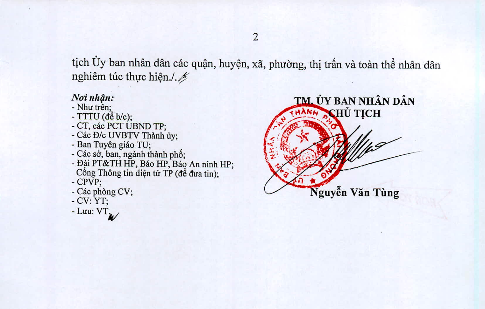 Yêu cầu người đứng đầu các sở, ban, ngành, đoàn thể, tổ chức chính trị, xã hội thành phố, cơ quan, đơn vị, doanh nghiệp trên địa bàn thành phố, Chủ tịch UBND các quận, huyện, xã, phường, thị trấn và toàn thể nhân dân nghiêm túc thực hiện./.