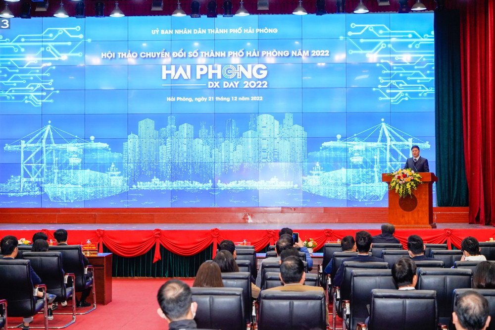 Phát biểu khai mạc hội thảo, Phó Chủ tịch UBND thành phố Hoàng Minh Cường chia sẻ: Trong năm 2022, thành phố Hải Phòng xác định việc thay đổi tư duy, thay đổi cách nghĩ là câu chuyện đầu tiên và tiên quyết trong hành trình chuyển đổi số của mình. Hải Phòng đang từng bước chuyển dịch lên môi trường số, phát triển hạ tầng số, dịch vụ số, thay đổi tỷ trọng kinh tế số; phát triển xã hội số, công dân số. Những sáng kiến, chiến lược từ cấp cơ sở đến thành phố; những bước đầu trong công tác xây dựng hạ tầng số của các cơ quan nhà nước; xây dựng cơ sở dữ liệu chuyên ngành, xây dựng các ứng dụng trên nhiều nền tảng số; xây dựng hệ thống giám sát, kiểm tra, đánh giá chính quyền số hướng đến việc người dân được hưởng thụ các kết quả do chuyển đổi số mang lại.