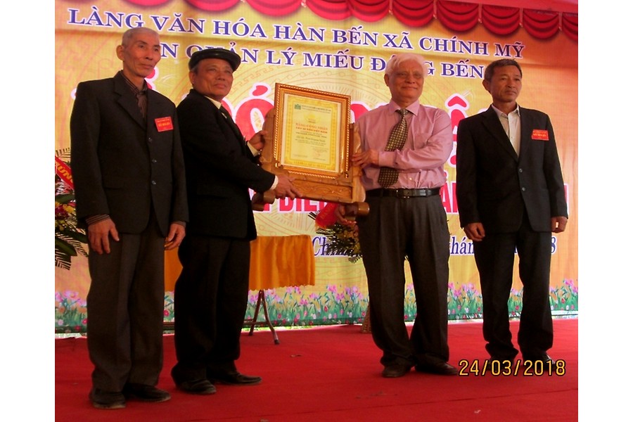 Đại diện địa phương đón bằng công nhận cây di sản Việt Nam.