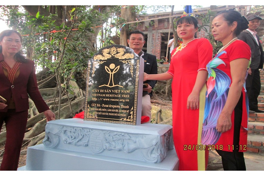 Gắn biển “Cây di sản Việt Nam” cho cây đa khoảng 300 năm tuổi.