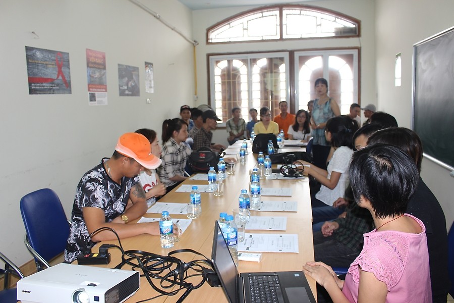Các đại biểu thăm nhóm Hải Đăng, một tổ chức cộng đồng dành cho người sử dụng ma túy tại Hải Phòng.
