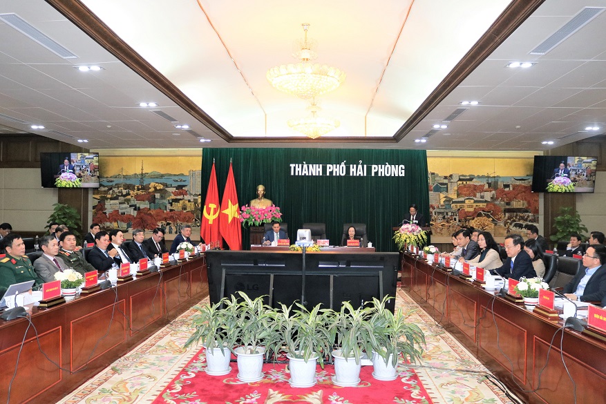 Nhân dịp chuẩn bị bước sang năm mới 2020 và đón Tết Cổ truyền dân tộc, thay mặt Đảng bộ, chính quyền, quân và dân thành phố Hải Phòng, tôi xin kính chúc đồng chí Tổng Bí thư, Chủ tịch Nước; đồng chí Thủ tướng Chính phủ, đồng chí Chủ tịch Quốc hội, các đồng chí lãnh đạo Đảng, Nhà nước, các đồng chí lãnh đạo các bộ, ban ngành Trung ương, các địa phương và toàn thể các đồng chí, các quý vị đại biểu sức khỏe, hạnh phúc và thành công.