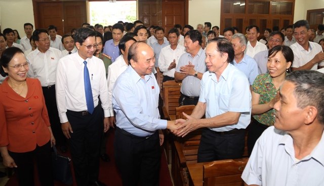 Tại buổi tiếp xúc, Thủ tướng Nguyễn Xuân Phúc thông tin tới cử tri, Kỳ họp thứ Bảy Quốc hội khóa XIV là một kỳ họp thành công tốt đẹp, thể hiện đầy đủ chức năng, nhiệm vụ, quyền hạn của Quốc hội nước ta theo Hiến pháp quy định, đó là lập pháp, giám sát, quyết định những vấn đề quan trọng của đất nước. Quốc hội và Chính phủ tiếp tục xây dựng Nhà nước pháp quyền xã hội chủ nghĩa do nhân dân, vì nhân dân, tiếp tục thực hiện tốt Hiến pháp năm 2013, bảo vệ quyền con người, quyền công dân, hội nhập quốc tế sâu rộng đưa đất nước tiến lên.