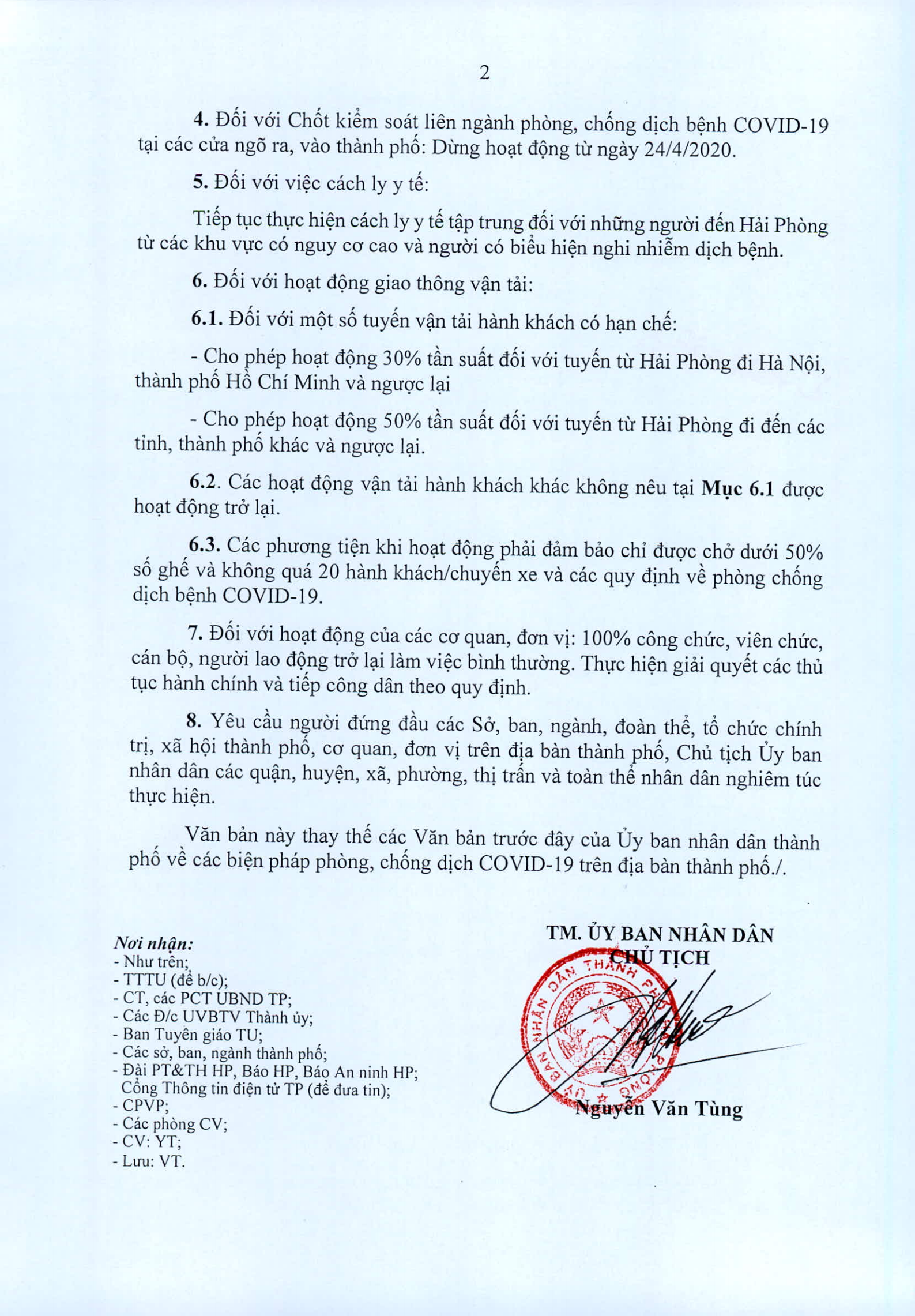 4. Đối với Chốt kiểm soát liên ngành phòng, chống dịch bệnh COVID-19 tại các cửa ngõ ra, vào thành phố: Dừng hoạt động từ ngày 24/4/2020.
