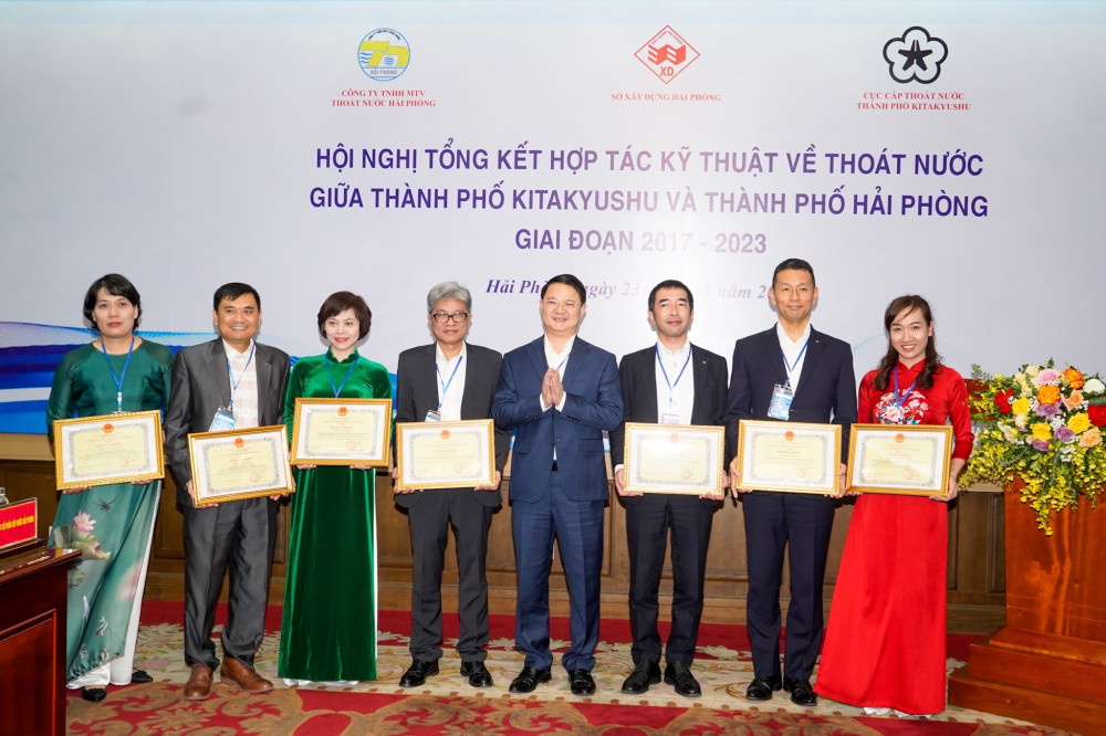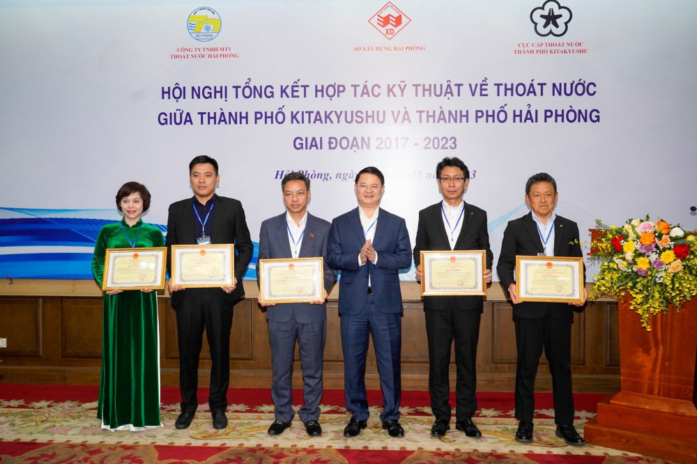 Nhân dịp này, 12 tập thể, cá nhân vinh dự được nhận bằng khen của Chủ tịch UBND thành phố Hải Phòng vì đã có thành tích xuất sắc trong hoạt động hợp tác giai đoạn 2017-2023. Cục Cấp thoát nước thành phố Kitakyushu bàn giao cho Công ty TNHH MTV Thoát nước Hải Phòng 1 số thiết bị công nghệ phục vụ cho lĩnh vực thoát nước và xử lý nước thải./.