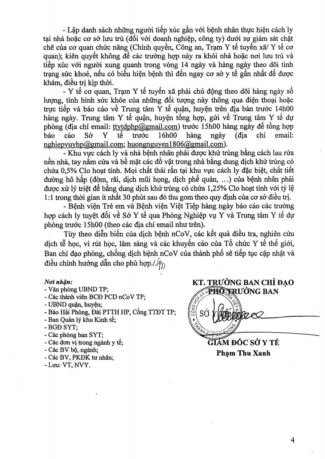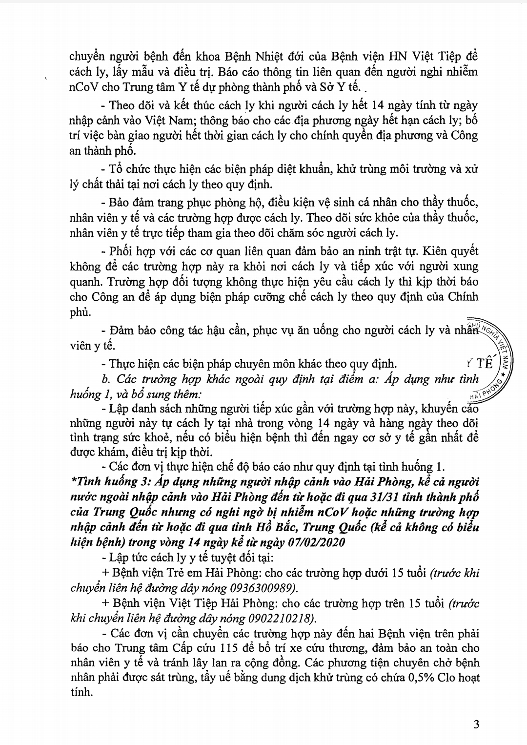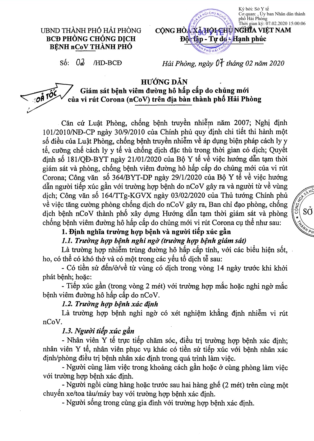 Ngày 7/2/2020, Ban Chỉ đạo phòng, chống dịch bệnh nCoV thành phố (Ban Chỉ đạo Anti-nCoV Hải Phòng) xây dựng Hướng dẫn tạm thời giám sát và chống bệnh viêm đường hô hấp cấp do chủng mới vi rút Corona.