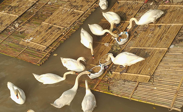 Ghi nhận của Phóng viên, để tránh cái nắng gay gắt, hàng ngày đàn thiên nga khôn khéo di chuyển vào gầm cầu vượt sông Tam Bạc. Nếu có ra sông bơi lội chúng thường xuyên lặn xuống nước hoặc rúc đầu vào cánh. Đến khi mặt trời lặn và buổi tối, thiên nga mới ở bơi lội tung tăng trên mặt sông lâu hơn. Tại đây BQL đã bố trí các bè tre để thiên nga nghỉ chân và ăn uống…