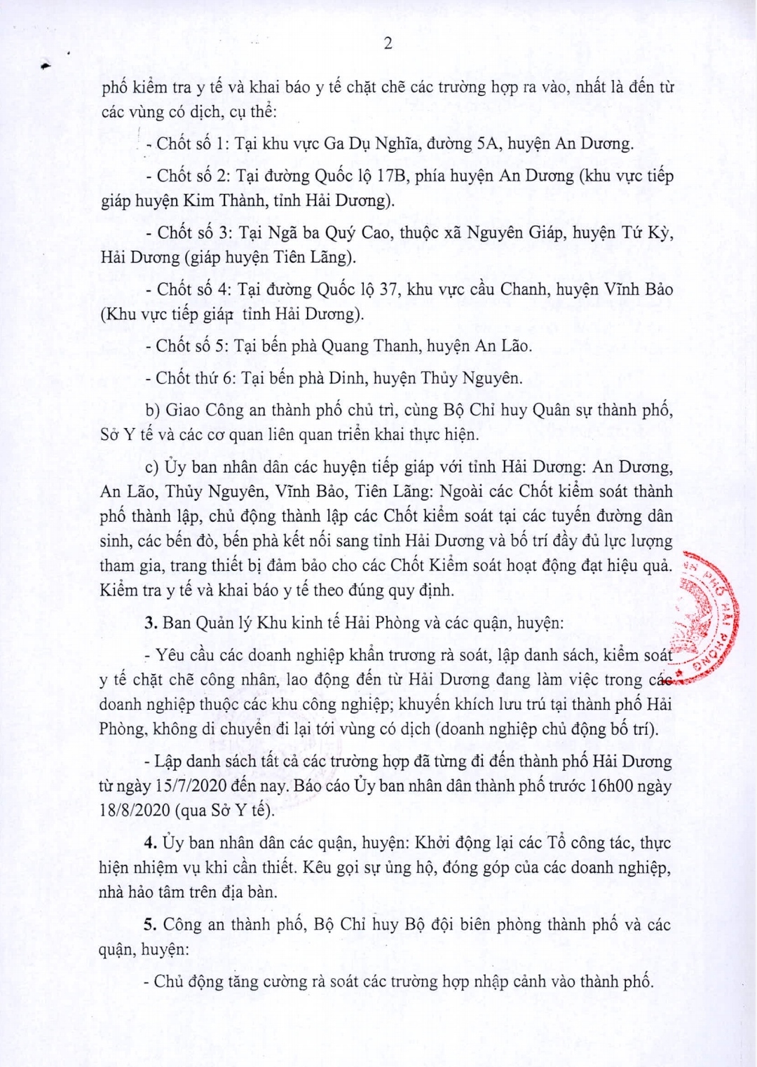 Theo đó, trên địa bàn thành phố Hải Phòng dừng hoạt động các cơ sở kinh doanh dịch vụ không thiết yếu; thành lập các chốt kiểm soát dịch Covid-19.
