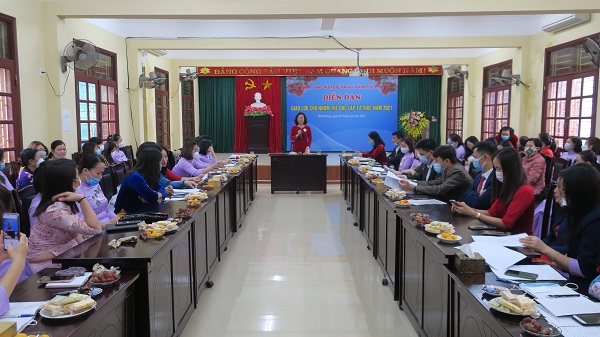 Phát biểu tại diễn đàn, đồng chí Vũ Thị Kim Liên, Chủ tịch Hội LHPN thành phố khẳng định những kết quả của Đề án đã góp phần giảm sự quá tải cho một số trường mầm non công lập tại Hải Phòng, đặc biệt các quận, huyện có nhiều khu công nghiệp, tạo việc làm cho một số giáo viên mầm non được đào tạo nhưng chưa có việc làm, dần khép lại khoảng cách giữa mầm non tư thục và mầm non công lập.