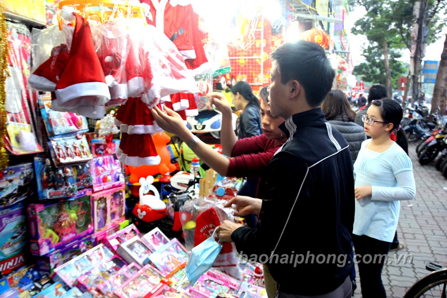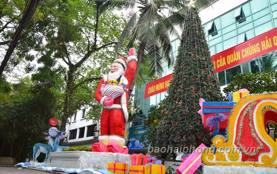 Còn ít ngày nữa tới Noel nhưng những ngày này, trên khắp các đường phố Hải Phòng, không khí đã ngập tràn. Các nơi công cộng, giáo xứ, xóm đạo được trang trí lung linh sắc màu với các tiểu cảnh. cây thông, ngôi nhà tuyết và các dải đèn xanh đỏ tạo không khí vui tươi chào đón năm mới.