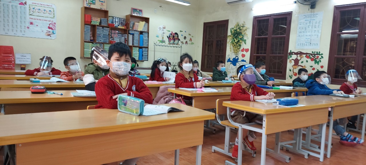 Tương tự, tại trường Tiểu học Nguyễn V.T (quận Lê Chân, Hải Phòng), ngày đầu trở lại trường có khoảng 30% học sinh đến lớp, có lớp chỉ 10 học sinh. Nhà trường đang áp dụng 2 hình thức trực tiếp và online. Đối với giáo viên nhà trường diện F0, F1, nhà trường bố trí cho dạy online nhằm đảm bảo an toàn cho cả cô và trò.