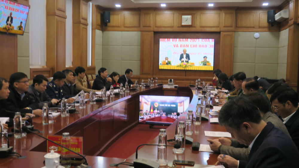 Tại điểm cầu thành phố Hải Phòng, Phó Chủ tịch UBND thành phố Lê Khắc Nam chủ trì Hội nghị, cùng dự có thành viên Ban Chỉ đạo 799 và Ban Chỉ đạo 389 thành phố.