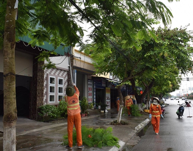 Lực lượng chức năng quận Đồ Sơn (Hải Phòng) cắt tỉa cây xanh trước khi bão về.