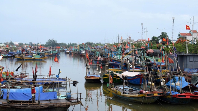 | Tàu, thuyền của huyện Tiền Hải (Thái Bình) đã neo đậu an toàn. |
