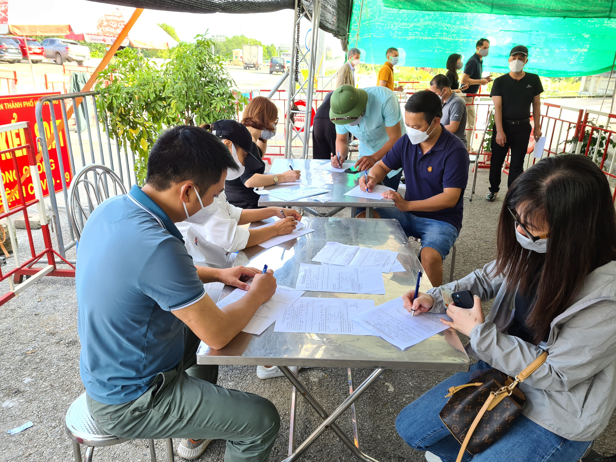 Một cán bộ công an làm việc tại chốt chốt kiểm soát dịch Covid-19 trên đường cao tốc Hà Nội-Hải Phòng (thuộc địa phận quận Dương Kinh) cho biết, hàng ngày có hàng nghìn người từ các tỉnh thành khác về Hải Phòng qua chốt này. Khi khai báo y tế, người dân có thể chọn hình thức khai báo điện tử hoặc tờ khai giấy.