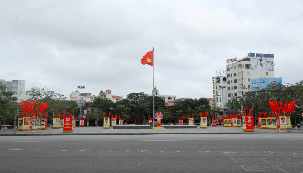 Mọi con đường, góc phố Hải Phòng đều được trang hoàng, rực rỡ sắc màu của cờ, hoa, khẩu hiệu, pa nô, áp phích tuyên truyền, cổ vũ cho cuộc bầu cử, để ngày bầu cử thực sự là ngày hội của toàn dân. Ảnh: An Đăng