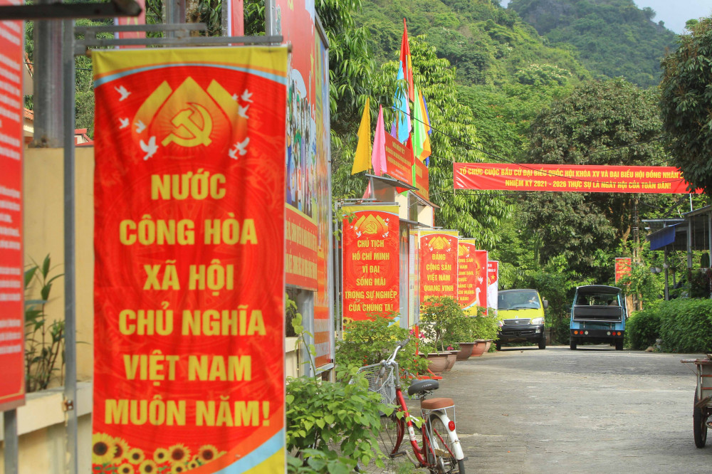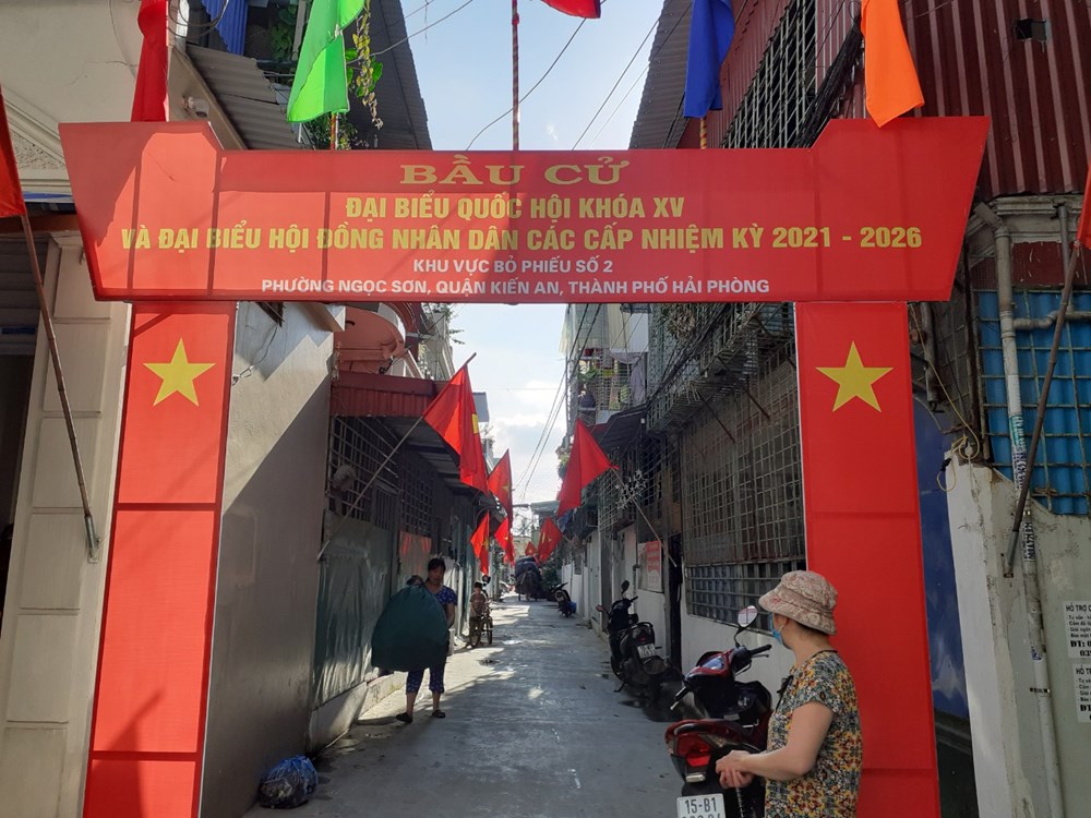 Một khu dân cư tại phường Ngọc Sơn, quận Kiến An rực rỡ trước ngày bầu cử. Ảnh: Thúy Hằng