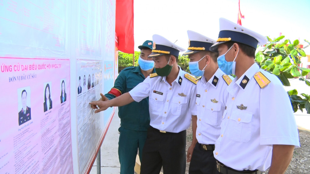 Cử tri huyện Bạch Long Vĩ nghiên cứu danh sách các ứng cử viên trước khi đi bỏ phiếu sớm vào ngày 22/5. Ảnh: Văn Minh