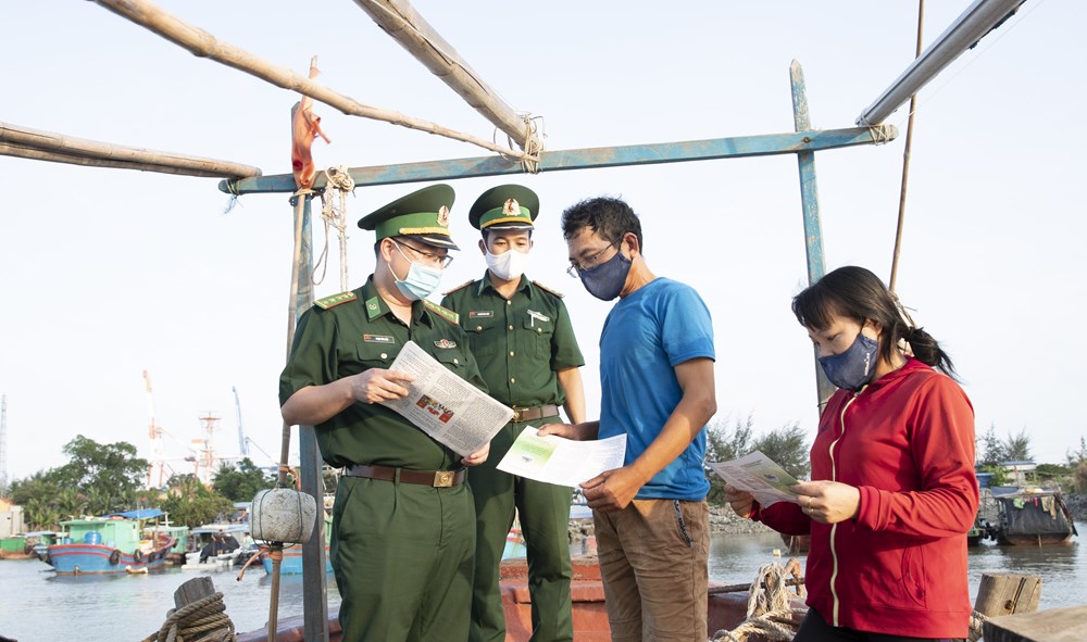 Cán bộ Đồn Biên phòng Cát Hải giải thích những quyền lợi, nghĩa vụ của công dân về bầu cử cho người dân. Ảnh: Trung Dũng