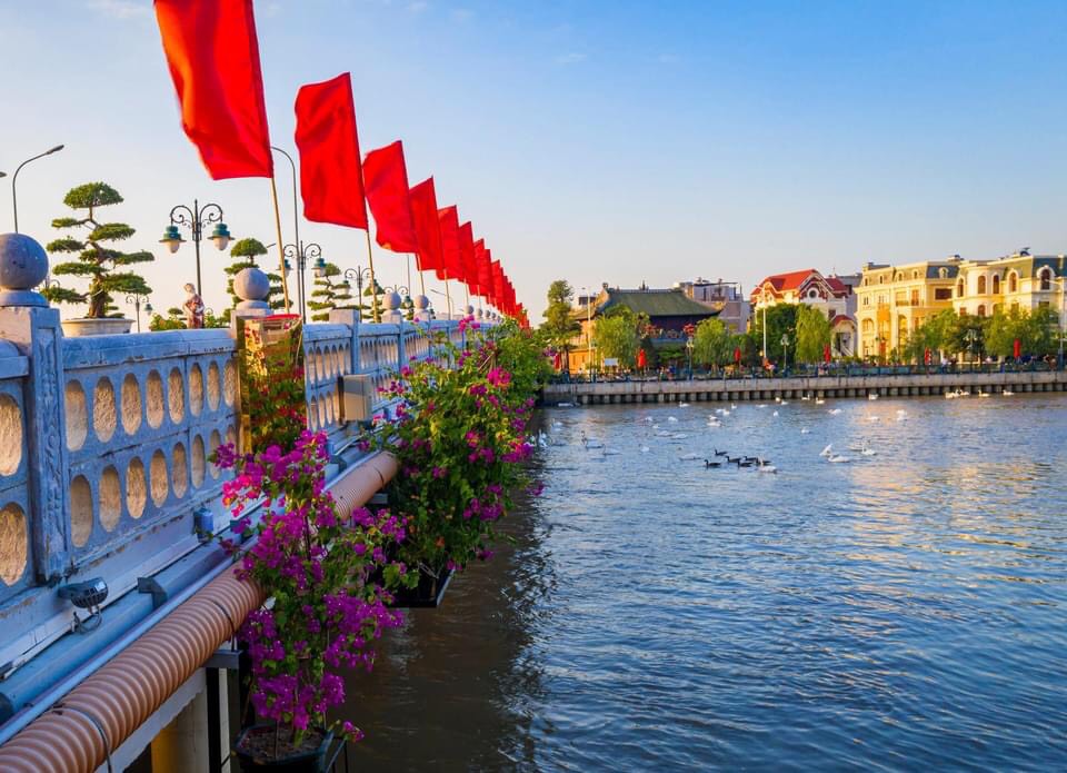 Sông Tam Bạc rực rỡ cờ hoa. Ảnh: Duy Thịnh