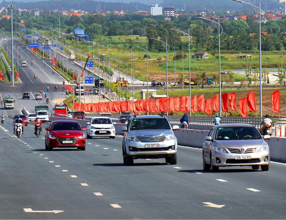 Tuyến đường Hồ Sen – Cầu Rào 2 vừa hoàn thành, cùng với sắc cờ đỏ rực rỡ đã mang đến một diện mạo mới cho quận Lê Chân. Ảnh: Hồng Phong