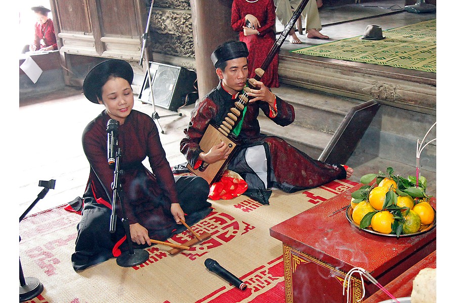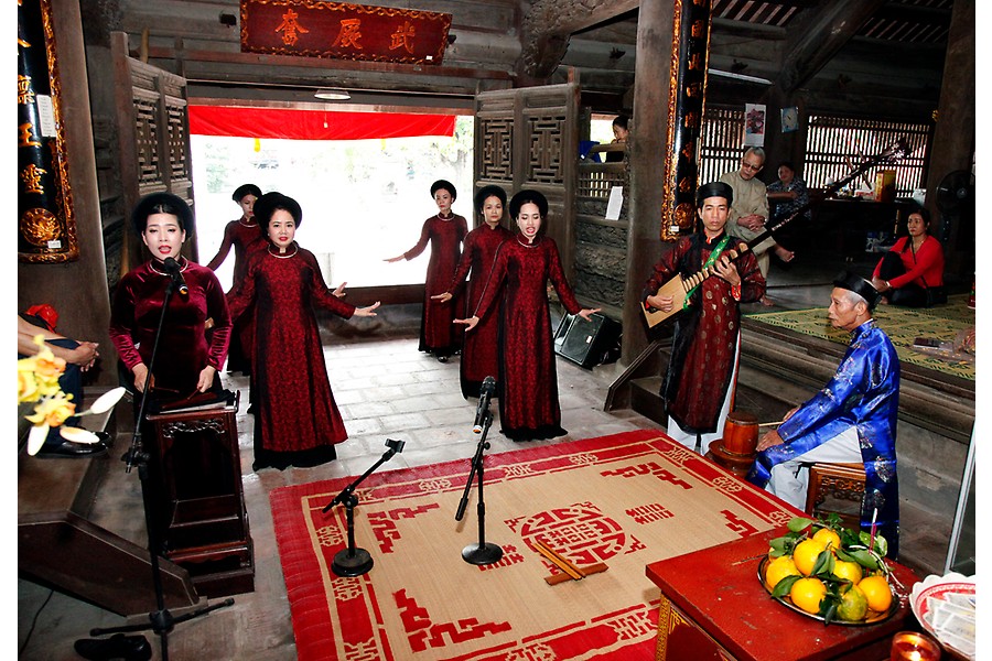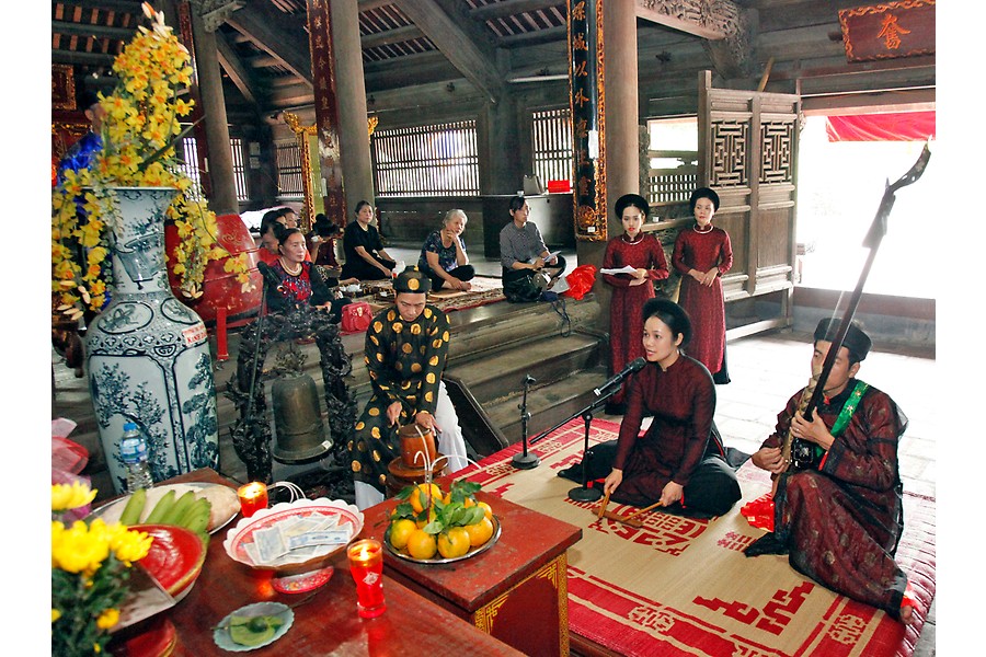 Biểu diễn canh hát cửa đình lối cổ tại đình Kênh sáng 27-10.